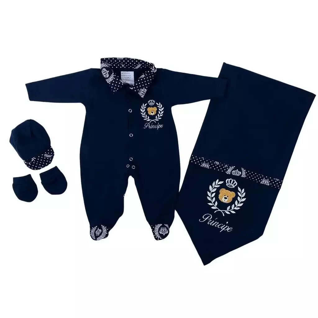 Completa: Inclui macacão, manta, boné e luvinhas, ideal para manter o bebê aquecido e estiloso.